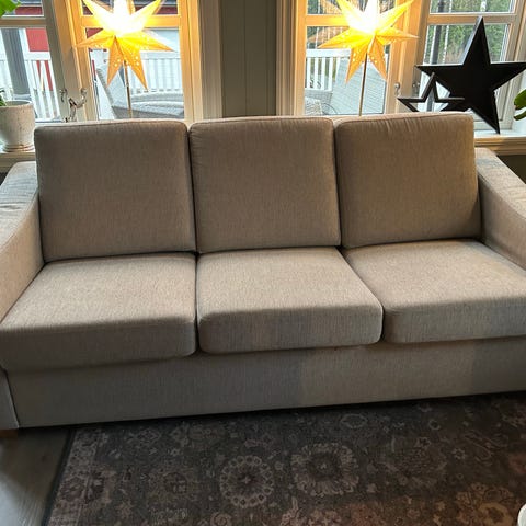 Flott sjeselong, fremstår nesten som ny. 2-3 sitteplasser, kan også brukes som seng ved uventede overnattingsgjester. Medfølger 2 store puter og 3 små puter med originalt trekk. Pris kan diskuteres.