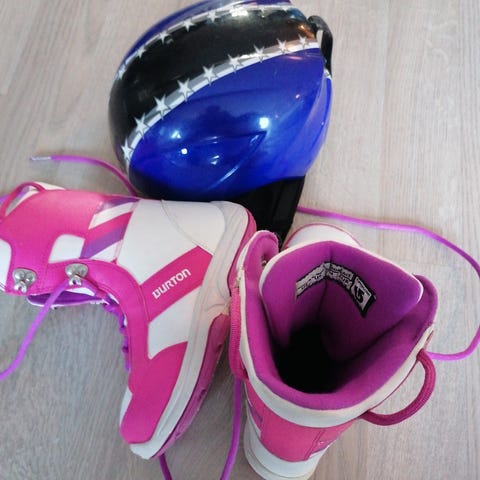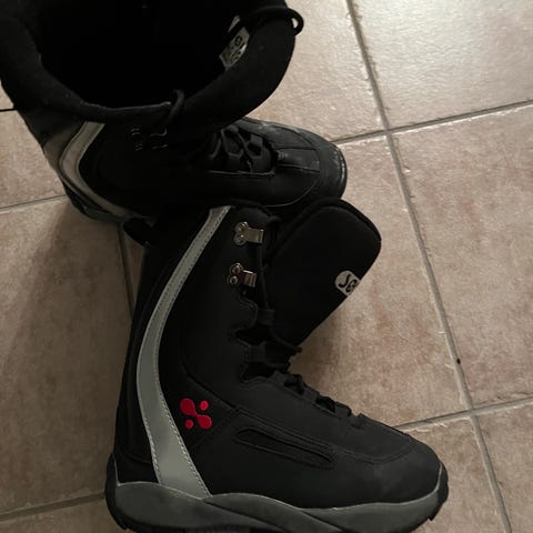 Burton snowboardstøvler i størrelse 32, med svart og blå farge. Støvlene er designet for å gi støtte og komfort ved snowboardkjøring.