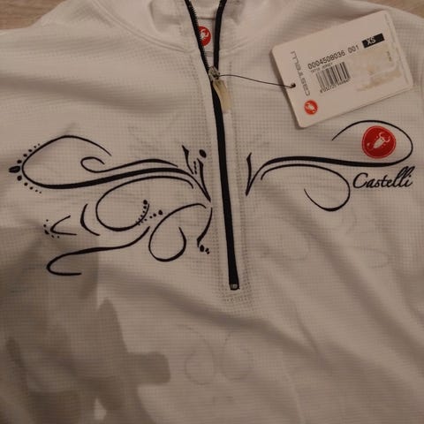 Castelli regnjakke til sykling. Jakken har lang ermer. Den har glidelås foran og reflekterende detaljer for økt synlighet.