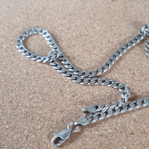 Pent brukt panserkjede i sølv til salgs. Lengde 46 cm. Vekt ca 20 gram.