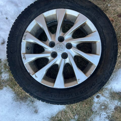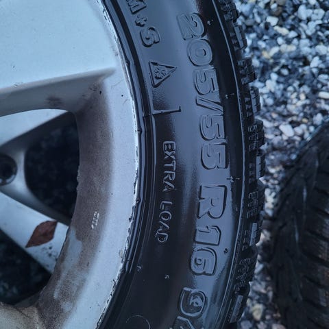 Mazda 3: Continental komplette hjul med piggfri dekk dimensjon 205/60 R16. Dekkene er merket Continental Winter Contact. Aluminiumsfelgene er brukt, mens dekkene er ubrukt.