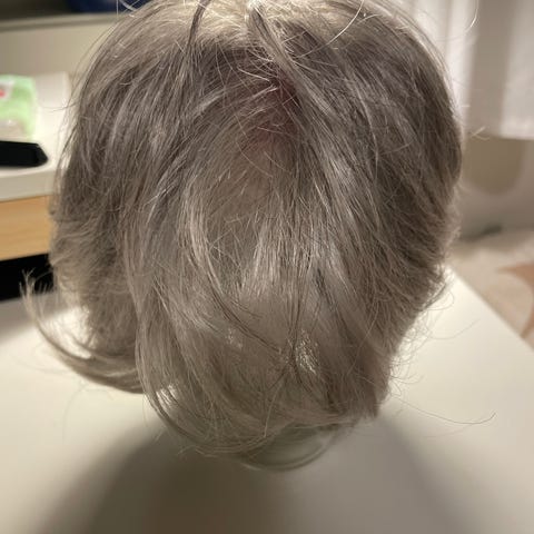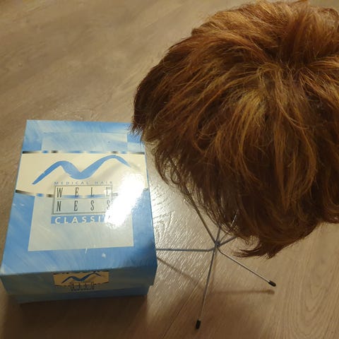 Syntetisk parykk fra Jon Renau, modellen heter Alessandra og fargen heter 'Fawn'. Den er litt lysere nederst. Kun brukt noen få ganger. Følger med shampo, balsamspray, stativ og bruksanvisning. Nypris 7600,- i mai, selges 3800,-