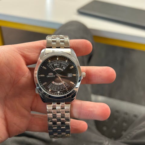 Chronotech dameklokke med prismeglass og svart skinnrem