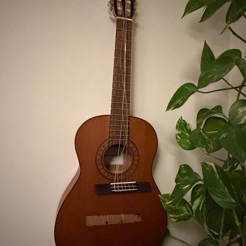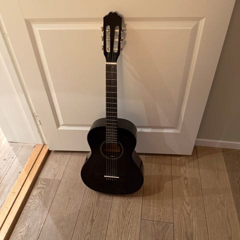 Ble brukt for ti år siden snart i forbindelse med et gitarkurs, men har nærmest kun ligget i etuiet siden. Etuiet følges for øvrig med.