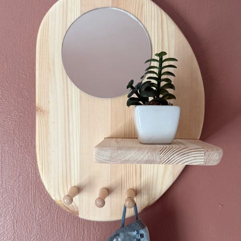 Gullfarget hylle til å ha på kommode eller til å henge på veggen.