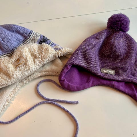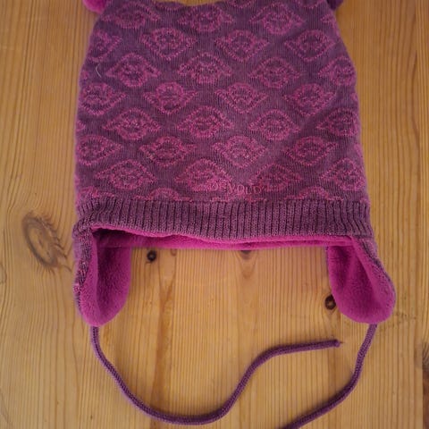 Rosa lue, med 50% merinoull utenpå, og fleece inni. Kjøpt på Polarn O Pyret og er str 9mnd-2år / 48/50. Ny, med lapp 🌸