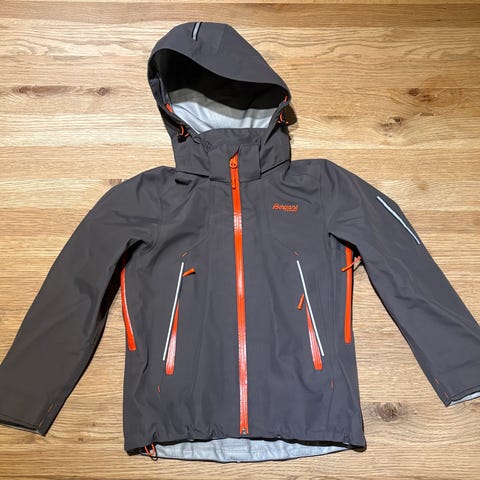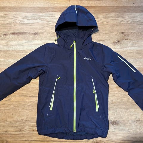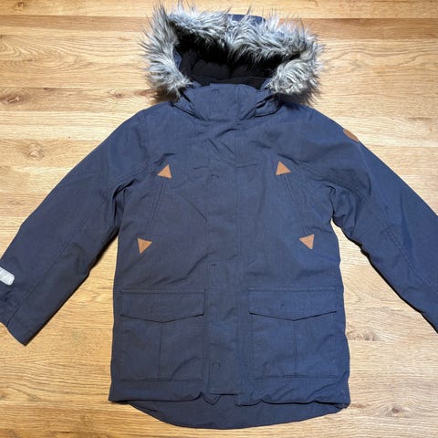 Vindfleecejakke str 128 fra Polarn O. Pyret er en vindtett jakke. Jakken er svart og har en brystlomme med glidelås, ermene har ribbestrikket vrangbord med tommelåpning, og refleks langs glidelås i front og på ryggen. Jakken kan kneppes inn som fōr i enkelte av skalljakkene til POP. Jakken er pent brukt med minimal slitasje. Det er en liten rød flekk i fronten, men den synes knapt. Mye bruk igjen.