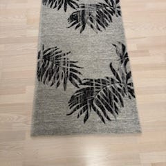 Panda barneromsteppe med motiv av en panda. Teppe i beige, svart og hvit farge med prikker. Egnet for barnerom og lek.
