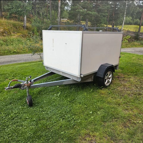 Vi selger vår trofaste tilhenger til en god pros. Tilhengeren er i ok stand men kunne sikkert fått nye dekk snart. Hengeren har som oftest stått inne i garasje under vinteren. Den har brems og fikk ny presenning for noen år siden.
