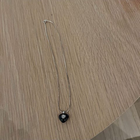 Smykkesett. Ring og ørepynt. 925 S med hvit emalje på front. Ringen er 4 cm lang og ørepynten er 2 cm lang. Ringen har en bitte liten «skjønnhets feil i emaljen nederst. Ikke veldig synlig. Det er som en liten prikk i emaljen ( se foto). Ringen ligger pent på fingeren og størrelsen er regulerbar. Gøyal og tøff stil til en ung dame.