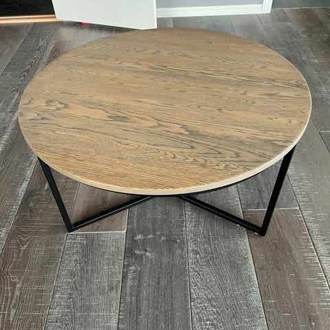 Det er en del bruksmerker på bordbeinene men platen er hel og fin.
