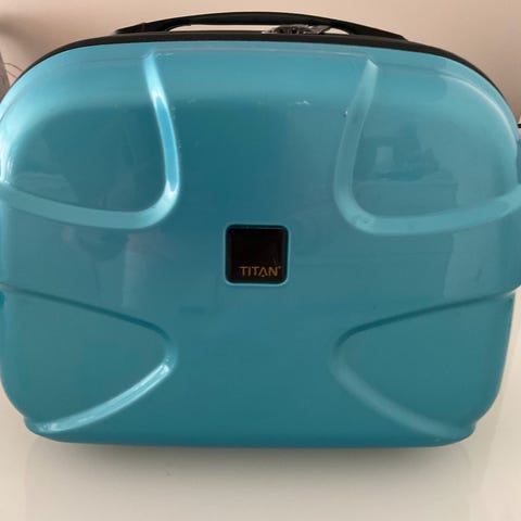 Ubrukt liten reiseveske, til kosmetikk eller andre ting. Den har 3 forskjellige rom, veldig romslig. Kjøpt sammen med en koffert fra det tyske merket Titan, men aldri brukt. Det er et lite merke fra oppbevaring på skiltet foran med merkenavnet, synlig på det siste bildet. Mål: 28 cm x 16 cm x 5 cm.