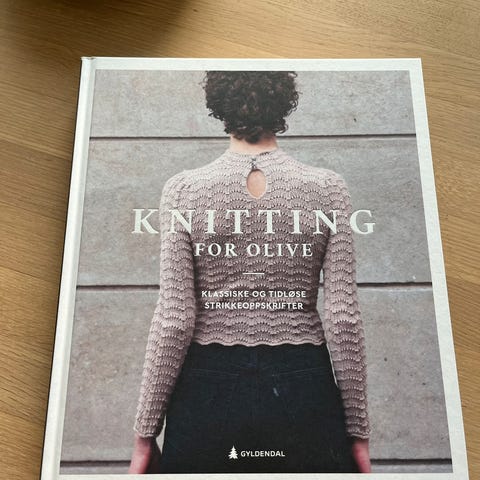 Olive Knitting strikkebok med klassiske og tidløse strikkemønstre. Inneholder detaljerte oppskrifter og instruksjoner for ulike strikkeprosjekter.