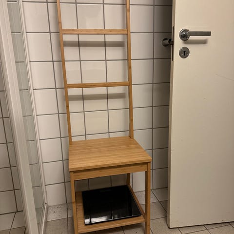 Ukjent bambusstige laget av naturlig bambusmateriale. Stigen har en enkel og funksjonell design med flere trinn, egnet for dekorasjon eller lett oppbevaring. Fargen er naturlig bambusfarget.