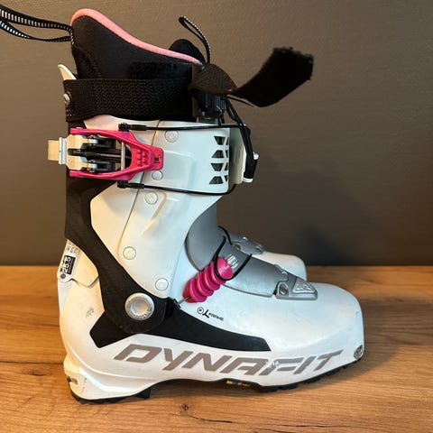 Movement Randonee skisko i hvit og svart med oransje såle. Skiskoen har et solid feste med spenne og borrelås for god støtte. Egnet for randonee- eller toppturbruk.