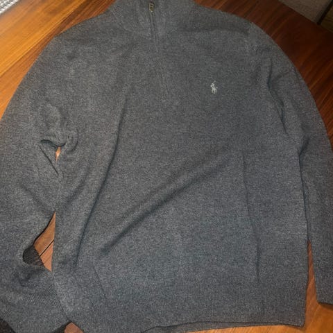 Polo Ralph Lauren Zip marineblå. størrelse M, bomull. Genseren har langermet design og halv glidelås i front. pent brukt, ingen synlige bruksmerker.