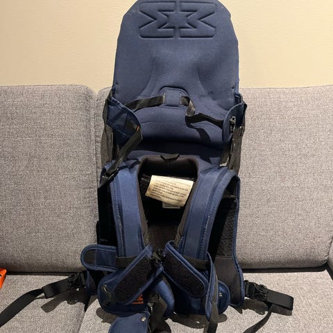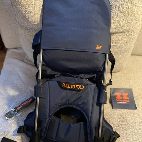 Selger Minimeis 5G bæresele i sort farge. Designet for å bære barn komfortabelt og sikkert. Passer for foreldre som ønsker praktisk bæring av barn.