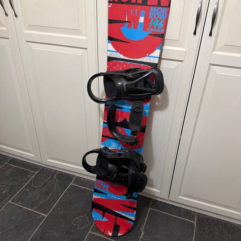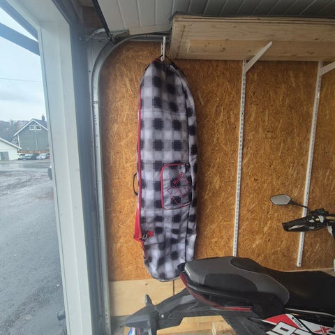 - Slitasje: Det er et lite kutt/hull i stoffet på baksiden (se bilde). Men snowboard er fremdeles godt beskyttet.