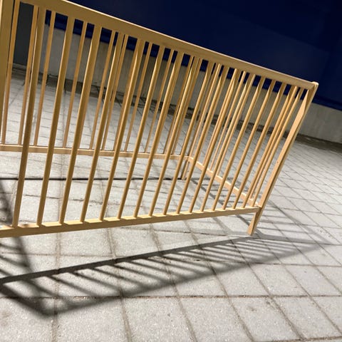 Bedside crib med mange høydejusteringer. Madrass kan medfølge om ønskelig. Sendes ikke pga str.