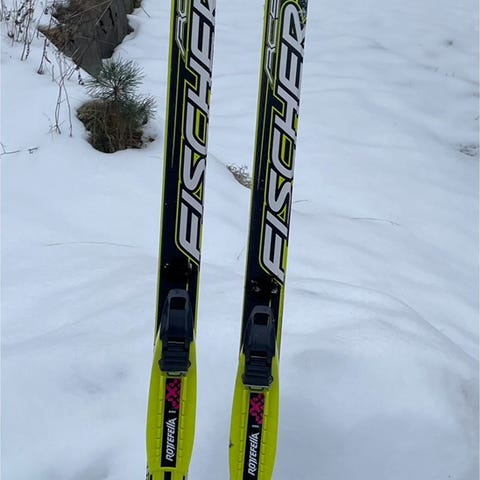 Fischer Sprint langrennsski i svart og gul farge. Skiene er designet for klassisk langrenn og har rottefella bindinger. Passer for bruk på preparerte langrennsløper.