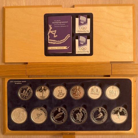 Alle sølvmyntene fra OL på Lillehammer i flott skrin av bjørk.