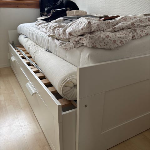 Fint seng med skufer. Mangler 1 skru men fungerer helt ok uten