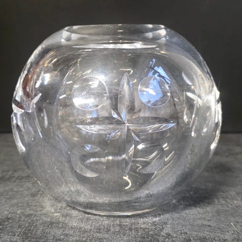 Selger en krystallskål. Den har stått til pynt i glasskap. Er fra slutten av 1970 - tallet