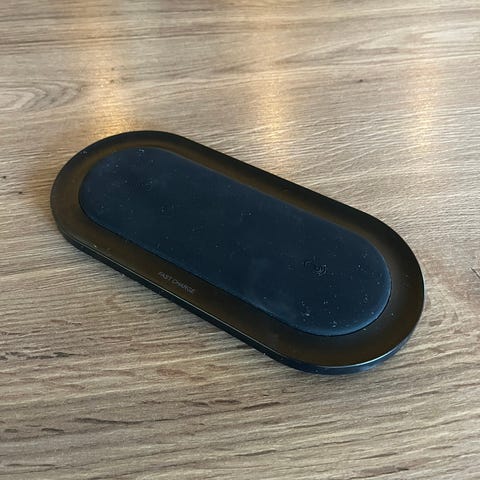 Selger en rosa trådløs ladeplate med usb-Micro b kobling. Virker slik den skal.