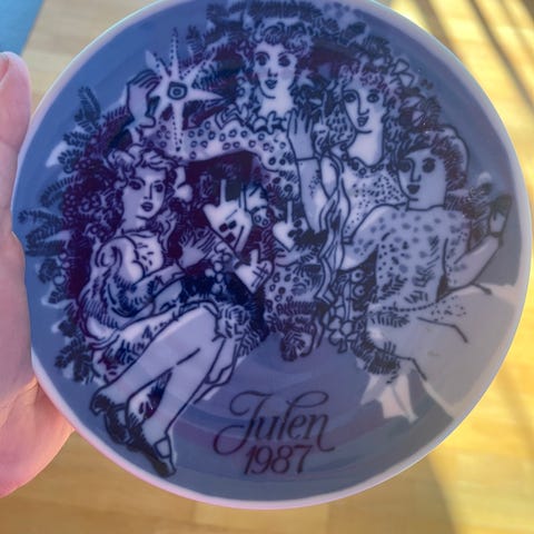Porsgrunds Porselænsfabrik Julekrus 1973 porselen blå og hvit