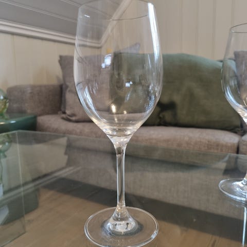 Nydelig vinglass med blomster øverst på kanten, har 7 stk
