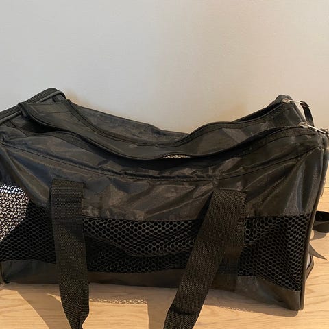 Lite brukt transportbag til dyr med lengde 40 og bredde 29cm. Bærereim hører med.