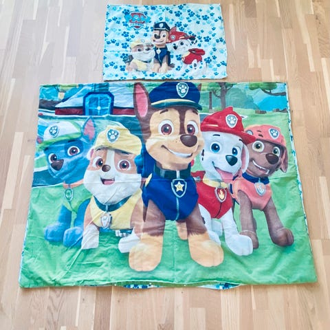 Selger et pent brukt paw patrol sengesett i str 100x140.