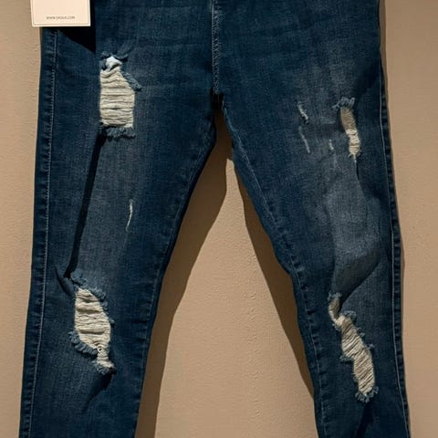 Tøff herre jeans i str 34 , lite brukt men fått et hull på kneet, selges kr 80,-