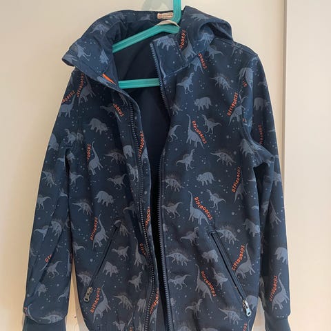 H&M Sport softshell jakke for gutt i størrelse 134. Jakken er svart og laget av polyester. Den har glidelås foran, lommer og er designet for utendørs bruk.