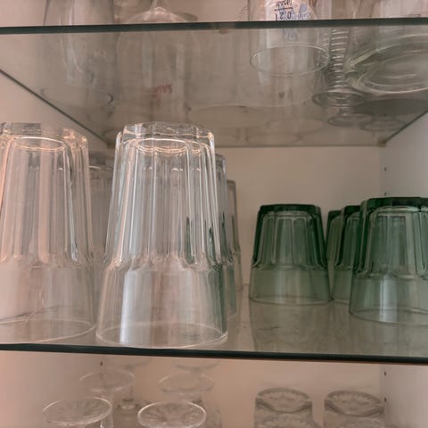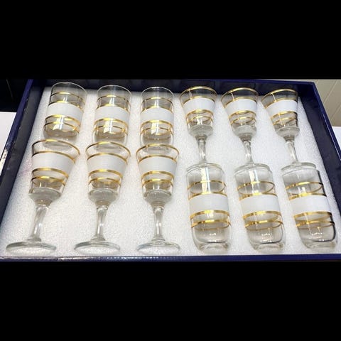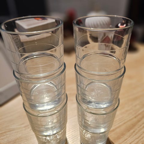IKEA glass med fot laget i klart glass. Glassene har en klassisk fasettert design og er egnet for servering av drikkevarer. Passer til bruk i hjemmet eller ved sosiale anledninger.