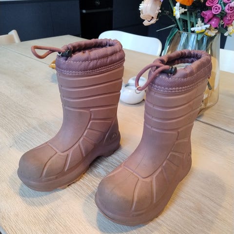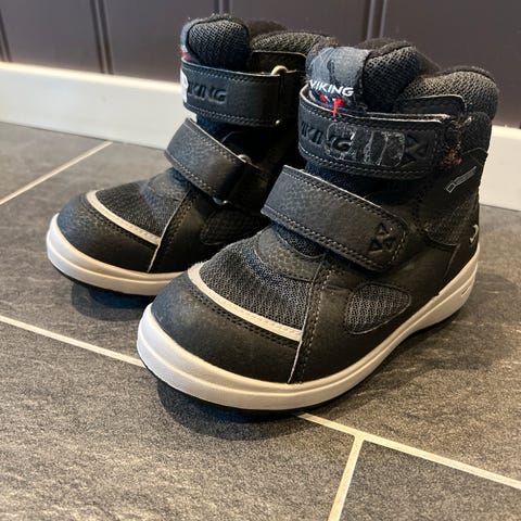 Viking Extreme Cherrox i størrelse 27. Ullfor og solide såler. Lette og varme, gir godt grep. Godt brukt, men uten feil og mangler. Mye bruk igjen.