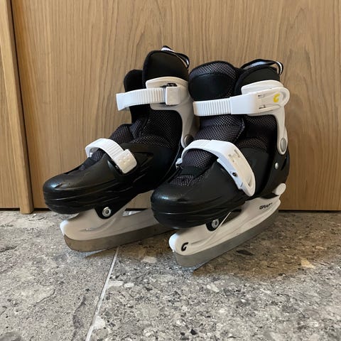 To forskjellige Kid Adj. Ice Skate Ishockeyskøyter i størrelse 30-33. Skøytene er justerbare og har svart og hvit farge. Pent brukte!