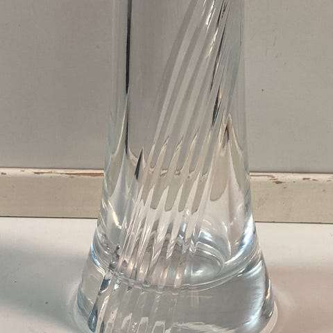 Hadeland Glassverk vase i klart glass med spiralformet dekor. Passer til dekorative formål og oppbevaring av blomster.