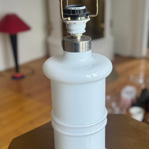 Vintage Holmegaard bordlampe i hvitt opalglass