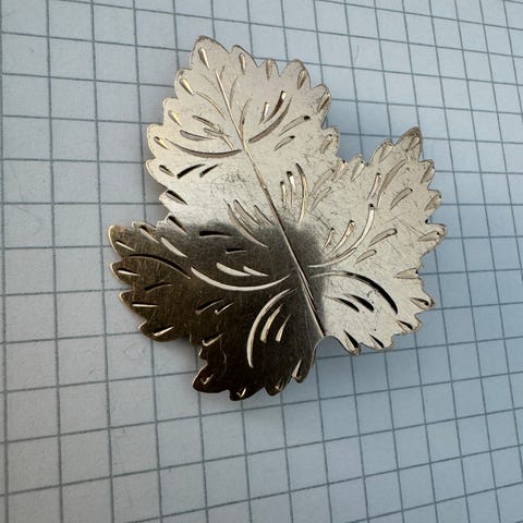 Pen stor nål i tinn. Pent brukt/ som ny. Kan sendes mot at kjøper betaler porto. 76 kr.