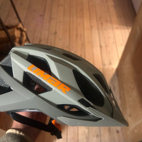 Hjelmen er synlig brukt, men fortsatt funksjonell.