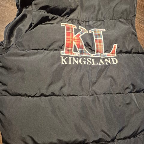 Kingsland Classic vest i størrelse XS med rød front og svart bakside. Laget av materialer egnet for yttertøy, med glidelås og lommer. Designet for å gi ekstra varme uten ermer.