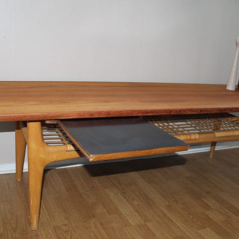 Håndlaget retro salongbord I eik av Mellemstrands trevareindustri.