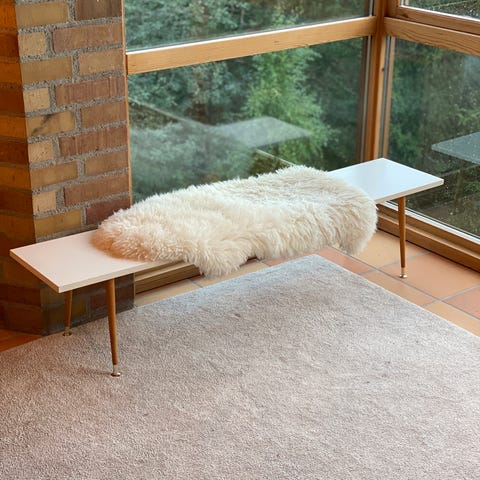 Håndlaget stort salongbord i eik selges. Bordet er produsert av Mellemstrands Trevareindustri for Bruksbo. Designer; Torbjørn Afdal. Bordet har en oval form, er stort og mange får plass rundt bordet.
