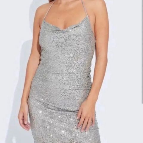 Bik Bok festkjole i størrelse XS, oransje farge. Kjolen har lange ermer og knappelukking foran. Den har en rynket detalj som gir et tilpasset uttrykk.