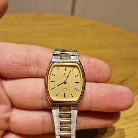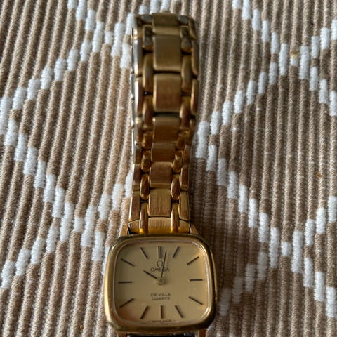 Selger en pen Omega De Ville Quartz fra 70‑tallet. Gullfarget skive, slank profil og ny svart lærrem. Klokken går som den skal og har kun små bruksspor.