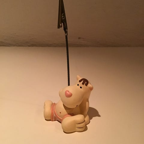 Høyde ca. 19,5 cm. Bredde ca. 7 cm. Noe slitasje på maling. Penn er tom. Kan sendes. Frakt betales av kjøper.