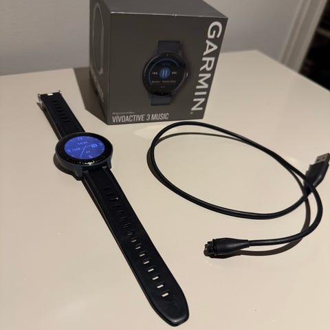 Polar Grit X smartklokke i hvit farge med medfølgende lader og pulsbelte. Klokken er designet for sports- og aktivitetsmåling og har funksjoner for pulsmåling. Egnet for bruk under trening og aktivitet.