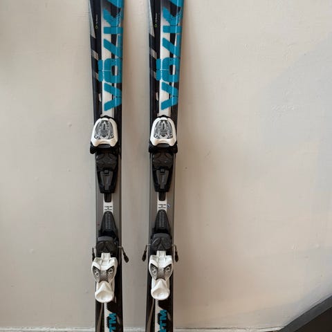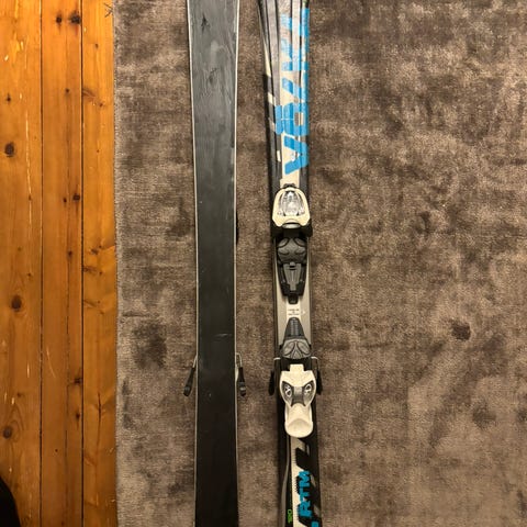 Fine slalåmski til barn/unge, kjøpt nye og kjørt pent og lite i noen sesonger. Noen riper i sålen. Skiene har vært vedlikeholdt hver sesong. .