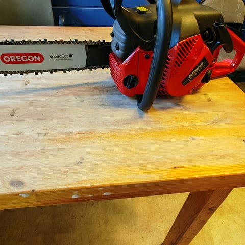 Har 2 bensin motorsager, og en på batteri. Bruker for det meste batteri sagen, derfor selges den ene bensin sagen. Svært lite brukt, nesten nytt sverd og kjede. Lengde på sverd 30cm, ikke tatt med det som er bak deksel. Veid til 5,85kg med sverdbeskytter.